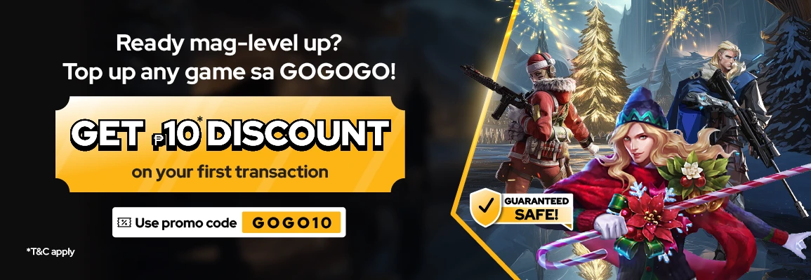 Get ready to make your first top-up experience on GOGOGO even more exciting! Enjoy an instant discount on any game top-up!